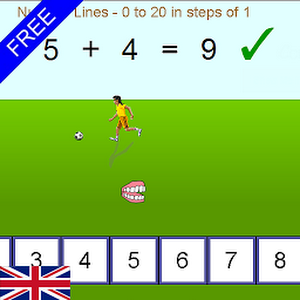 On the first screen you can choose which number line you would like to try. Once chosen, a screen with the number line along the bottom will be shown with Grey Olltwit standing above. The setting is a park and a football is kicked by a Brazilian footballer! Unfortunately the football accidentally strikes Grey on the back of his head and sends his false teeth flying onto the number line. The teeth then bounce their way to the first number shown in the question at the top of the screen. Using the arrow buttons at the bottom of the screen, the student must then add or subtract the second number in the question. Once all the questions are answered in a number line then the student will be able to choose to try another line or collect a certificate. Can be played landscape on a phone but best played on a tablet.